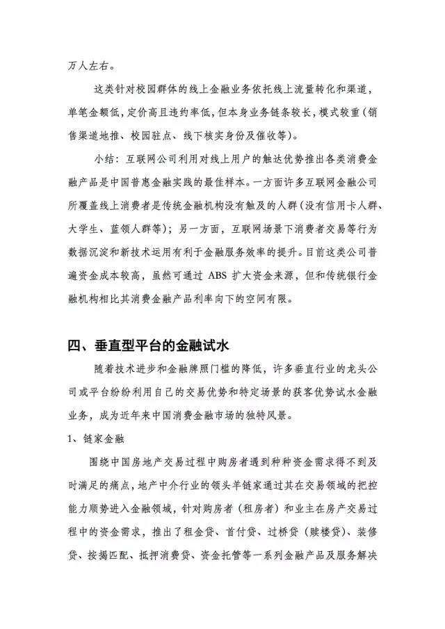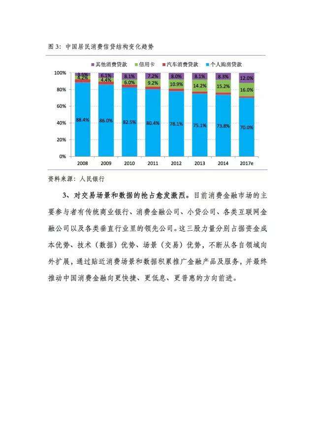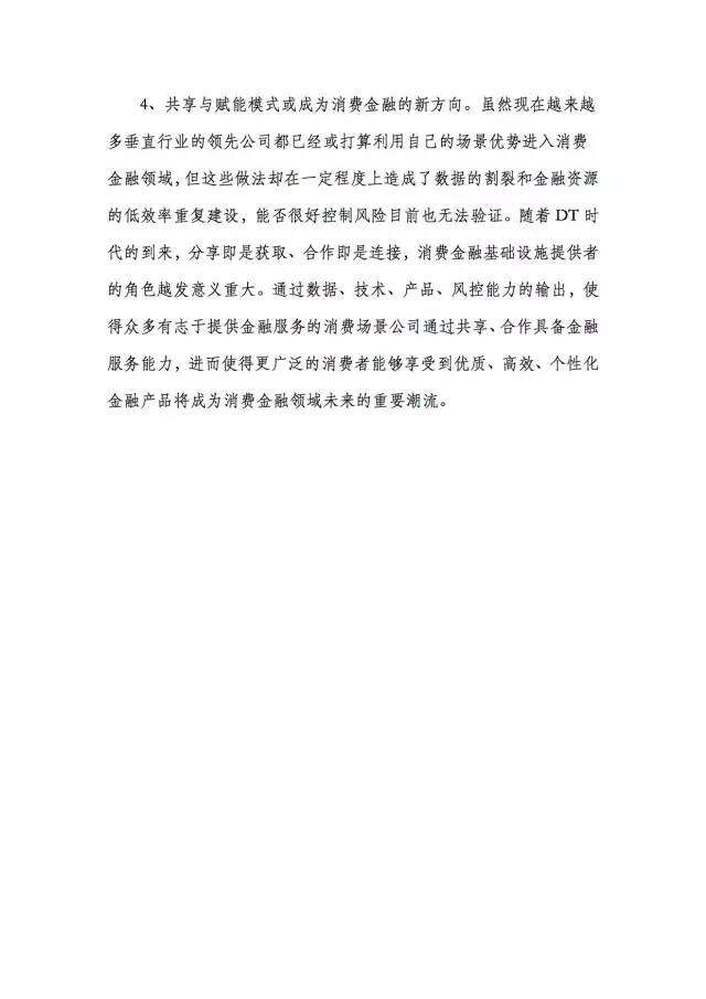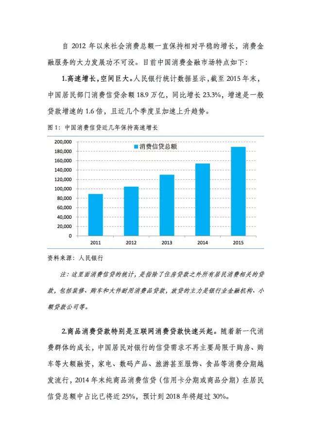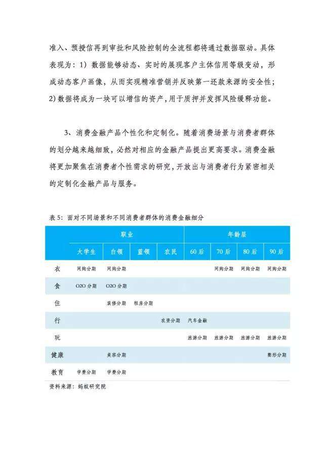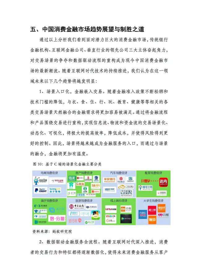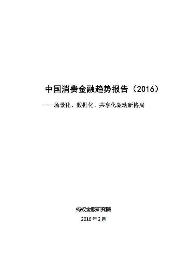 蚂蚁金服研究院:2016年中国消费金融趋势报告 中国经济进入新常态,正在逐步从投资拉动到以消费主导拉动的经济转型时期。当经济增长主要动力转向消费的时候,消费金融崛起将是大概率事件。 “我们做商业的基础设施正在被一些重大的技术革命所改变。新金融就是以这个新的金融基础设施,以移动互联、大数据和云计算的技术,来做的消费金融、大众金融和普惠金融。” ——蚂蚁金服首席战略官陈龙 值得庆幸的是,互联网技术发展和大数据时代的到来为消费金融的兴起提供了新的工具和模式。 我们认为,未来的商业业态将通过场景化、数据化和共享化不断演进,进而推动中国消费金融向更快捷、更低息、更普惠的方向前进,最终使更多消费者获得更有品质的产品和服务。 报告全文如下: 更多阅读:数字音乐大数据报告:中国网民手机音乐消费真相Wunderman Thompson:2023年美国黑色星期五报告Wunderman Thompson:2023年英国黑色星期五报告Niko Partners:2025年中国游戏机市场将接近25亿美元Sitecore:澳大利亚Z世代购物习惯调查中国消费趋势报告:三大新兴力量引领消费新经济波士顿咨询:2040年休闲旅游将带来15万亿美元的市场机遇美国零售联合会:2024年假日季消费增长2.5%-3.5%苏宁金融研究院:女性群体消费趋势研究报告Superdata:2019年5月全球游戏数字消费额共87亿美元Nielsen:2019年第一季度中国消费趋势指数为115 接近历史高位「新穷人」为何如此热衷于消费大数据说消费正从炫耀转向体验中国商业联合会:2015年预付卡消费规模约为7328.81亿元 同比下降8.49%Thinknow:2023年假日消费报告
