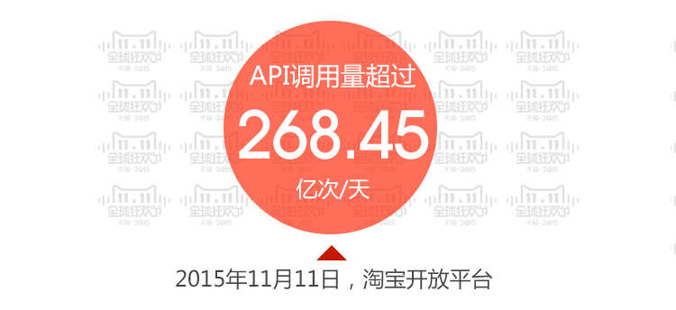2015年, 淘宝开放平台API调用量日均值,已达到2014年 “双11” 的峰值。2015年“双11”当天,淘宝开放平台的API调用峰值达到268.45亿次/天。