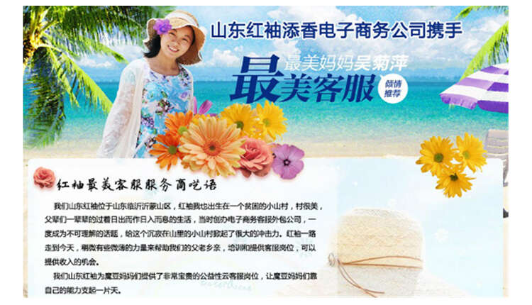 在吴双休培训出师的特殊人群客服,除了公司内部消化,也输送到服务市场下其他客服外包公司。例如,山东的客服外包公司红袖添香,接收了2名吴双休培训出来的魔豆妈妈和一些特殊人群。该公司负责人表示:“这些特殊的客服,基本不用操心,工作很尽心负责,雇佣店主对他们评价也很高”。该公司员工唐孝梅,先天性的肌营养不良,全身肌肉无力, 生活基本不能自理,但其在轮椅上工作,一天能够接待300个左右的买家,几年下来,其接待的总买家数已经达到864000人。