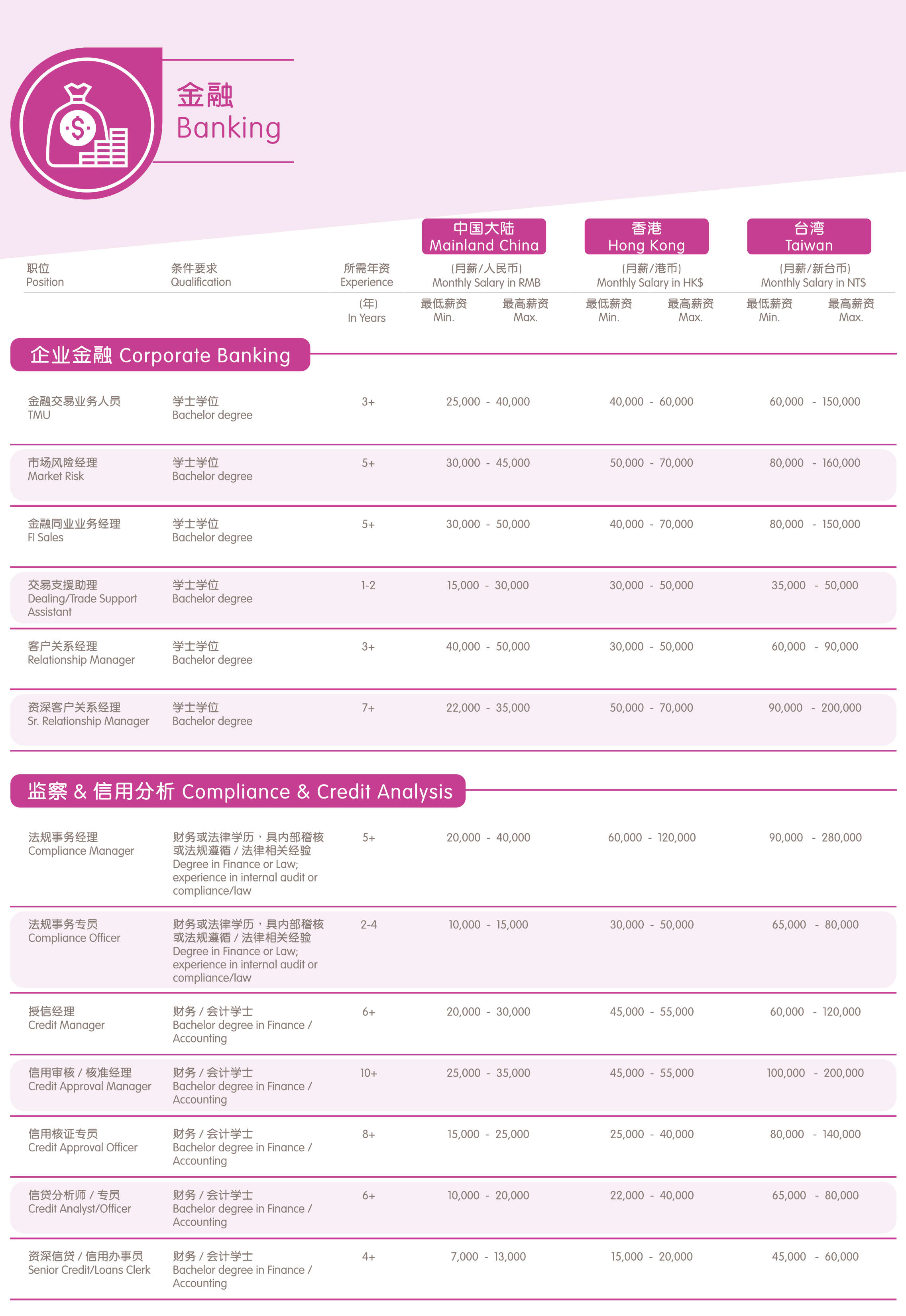 在持续高速发展的回落及产业结构调整的波动下,中国大陆的金融行业有很强的不可预期性。从目前的情况看,预计明年的行业活跃度及增速不会超过今年,部分金融企业已经开始采取观望的态势。因此,预计薪酬增幅也将弱于今年。