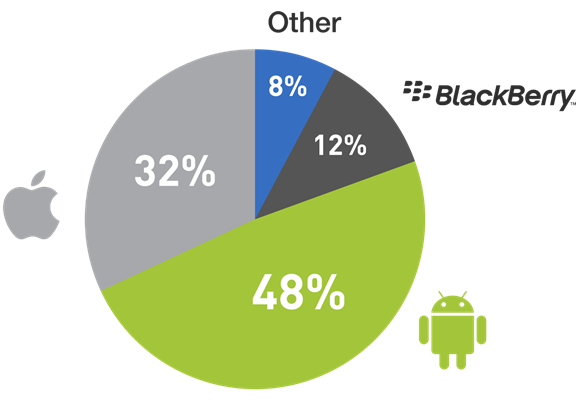 Android的绝对规模要大得多,根据Nielsen的数据,Android占智能手机市场的48%,远高于iOS的32%。Google称每天有85万的新增Android设备激活,Google Play总的应用下载量已经突破150亿。