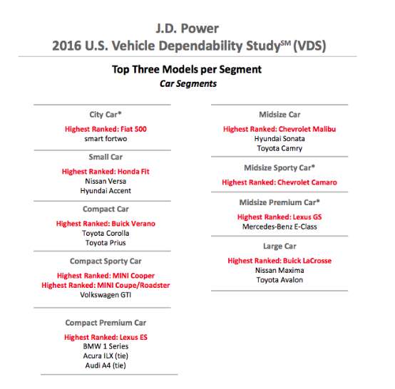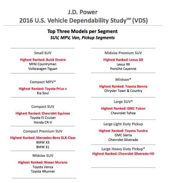 J.D. Power发布了备受关注的2016年美国车辆可靠性调查报告,它不仅是美国人非常看重的选车指南,更被视为全球汽车质量风向标。报告中,雷克萨斯、保时捷、别克分别以百车故障率95、97、106位列三甲。有人欢喜自然也有人愁,但无论各大汽车品牌对J.D. Power是爱是恨,都无损于它作为全球最权威汽车满意度调查机构之一的声誉与影响力。成立近50年来,J.D. Power一直都以研究的独立性和客观性著称,其专业性得到广泛认可。