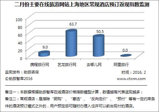 2.6上海地区各家网站酒店预订业务返现指数差距拉大 去艺龙返现力度最强