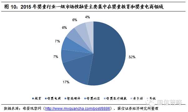 VC、PE青睐婴童消费行业。同时,2015年在“互联网+”的热潮下,大量VC、PE的资本涌入婴童消费行业,特别是线上婴童行业。根据不完全统计,2015年母婴行业一级市场投融资项目超过130个,金额超过180亿元,几乎全为互联网企业,主要集中在婴童教育和母婴电商领域。线上婴童模式的发展虽然没有对传统婴童消费品,特别是婴童用品的生产,带来根本意义的改变,但是它变革了整个市场的渠道环节,迎合了80、90后父母的线上消费习惯,同时拓宽各类婴童服务品类,给传统的婴童消费市场带来新的增长点。