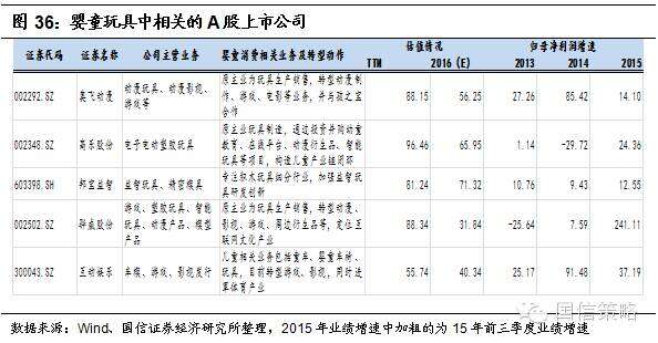 总体来看,目前国内传统玩具制造商大多处于产业链低端,行业毛利率较低,而行业龙头公司开始转型向内容创意和研发设计端升级,相对更具有投资价值,建议关注A股中的奥飞动漫、高乐股份、邦宝益智等。同时我们梳理了A股中涉及婴童玩具的相关上市公司,供投资者参考,不做投资建议。