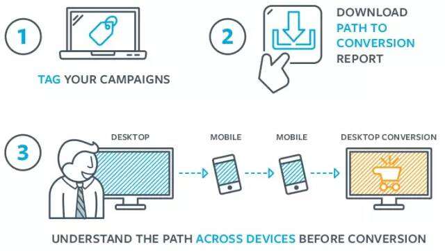 第二个工具名为Path toConversion,是一个跨屏转化率的监测工具。Facebook通过使用账户体系而非Cookie,实现对不同平台的同步检测,以阐明消费者的真实转化路径是怎样的,帮助广告主优化预算投放的渠道。