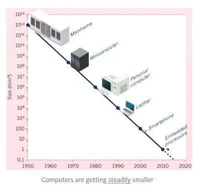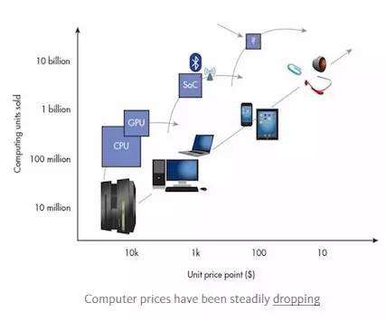 我们现在正进入一个处理器和传感器将变得愈来愈小愈来愈便宜的进程,这由 2 个原因造成: