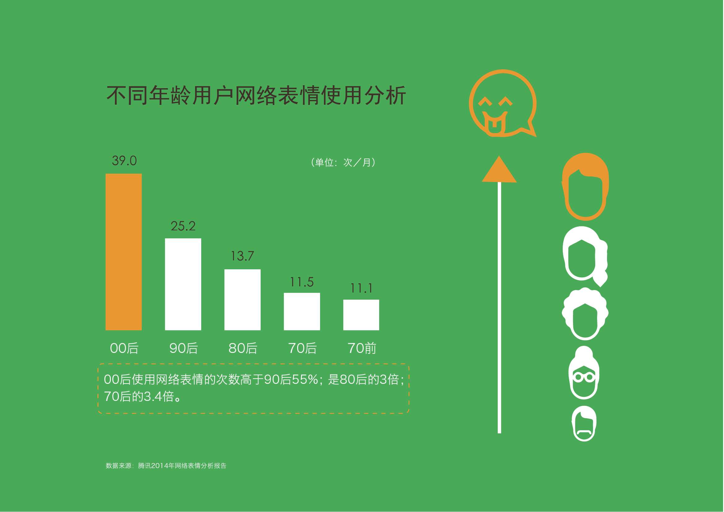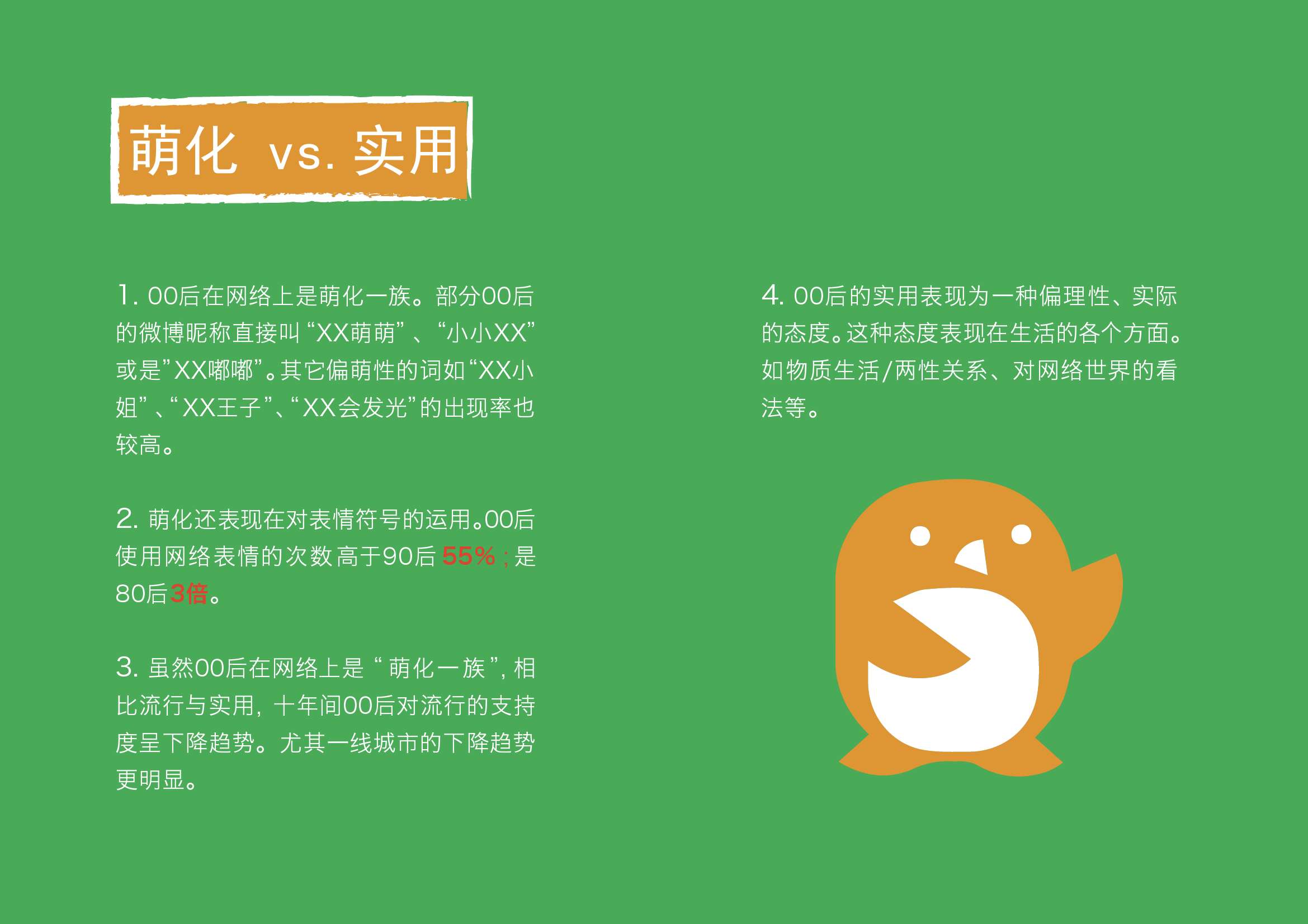 2. 萌化还表现在对表情符号的运用。00后使用网络表情的次数高于90后55% ;是80后3倍。