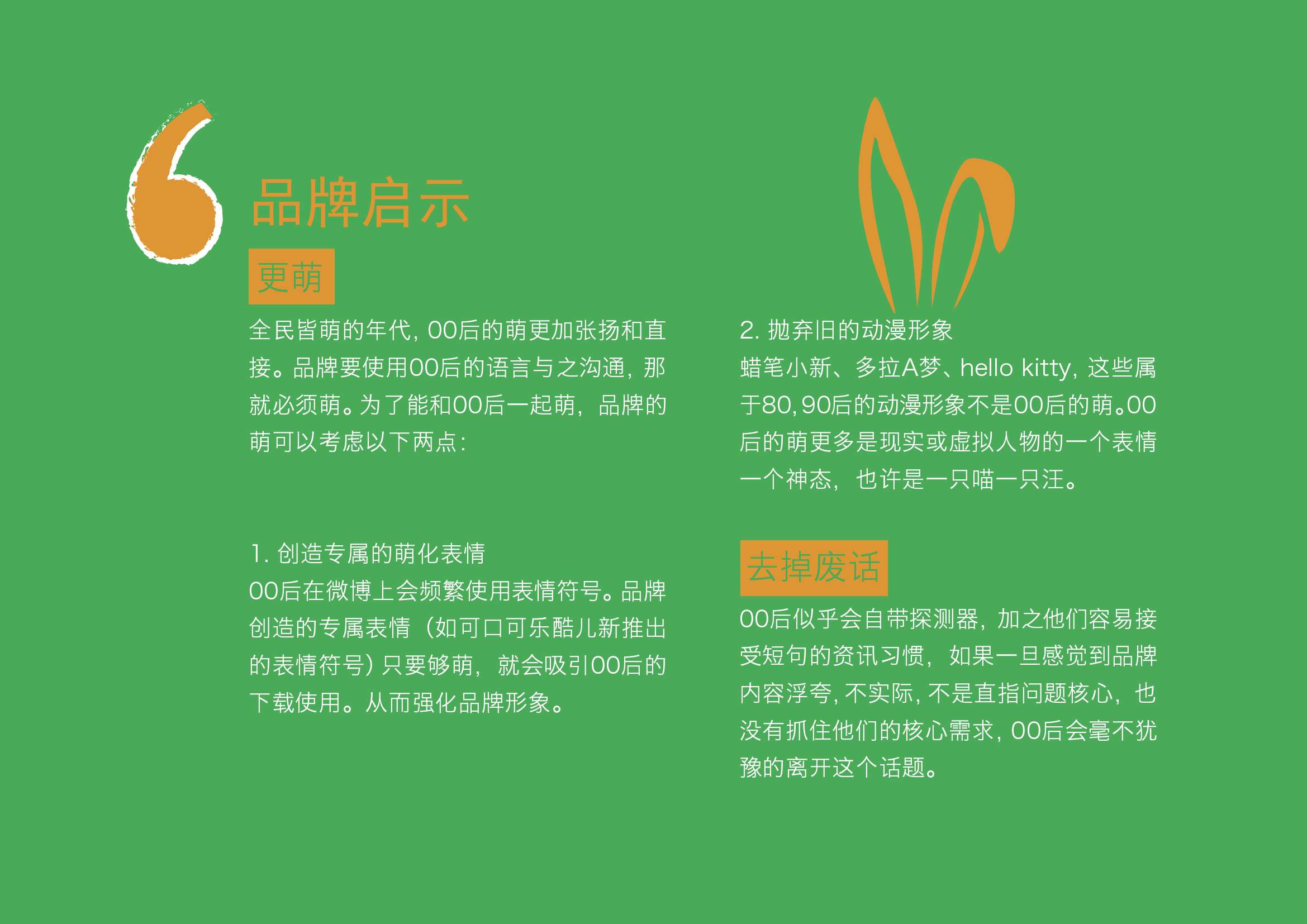 品牌启示:全民皆萌的年代,00后的萌更加张扬和直接。品牌要使用00后的语言与之沟通,那就必须萌。为了能和00后一起萌,品牌的萌可以考虑以下两点:
