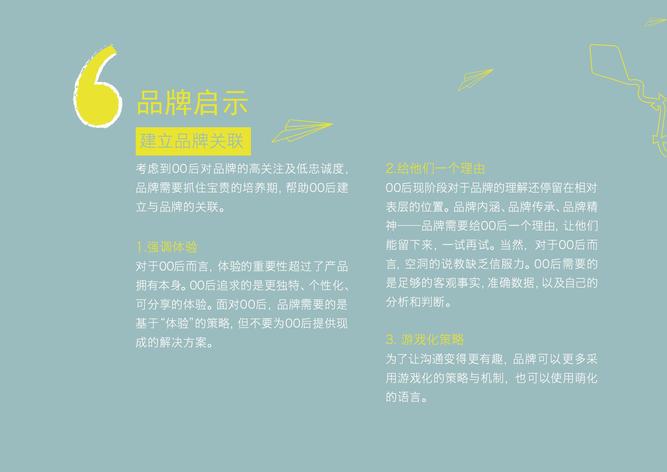 2.给他们一个理由。00后现阶段对于品牌的理解还停留在相对表层的位置。品牌内涵、品牌传承、品牌精神——品牌需要给00后一个理由,让他们能留下来,一试再试。当然,对于00后而言,空洞的说教缺乏信服力。00后需要的是足够的客观事实,准确数据,以及自己的分析和判断。