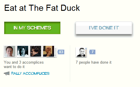 我在Google Schemer上发布了一个愿望:“去The Fat Duck餐厅吃饭”。