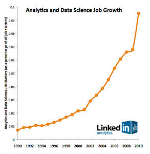 2009 年 Nathan Yau 在《数据科学家的崛起》( Rise of the Data Scientist )中写道:「我们都曾读到过,谷歌的首席经济学家 Hal Varian 在 1 月坦言未来十年最性感的工作会是统计学家。我显然完全同意这个看法。见鬼,我想说得再绝对一点。它现在就已经是最性感的工作了,无论肉体或精神层面。不过,如果你继续读 Varian 的访谈,你会发现他所谓的统计学家实际是泛指一类人,他们从大型数据集中提取信息,然后为不是数据专家的人们呈现一些可用的东西…(Ben) Fry 提倡一个把许多分散领域专业知识的技能和人才汇集在一起的全新领域… (包含计算机科学,数学,统计学,数据挖掘,图形设计,数据可视化和人机交互)。在 Flowing Data 网站强调可视化的两年之后,领域间的合作看起来变得更常见,但更重要的是,计算信息设计逐步逼近现实。我们看到数据科学家——能完成全部这些工作的人——从人群中脱颖而出。」