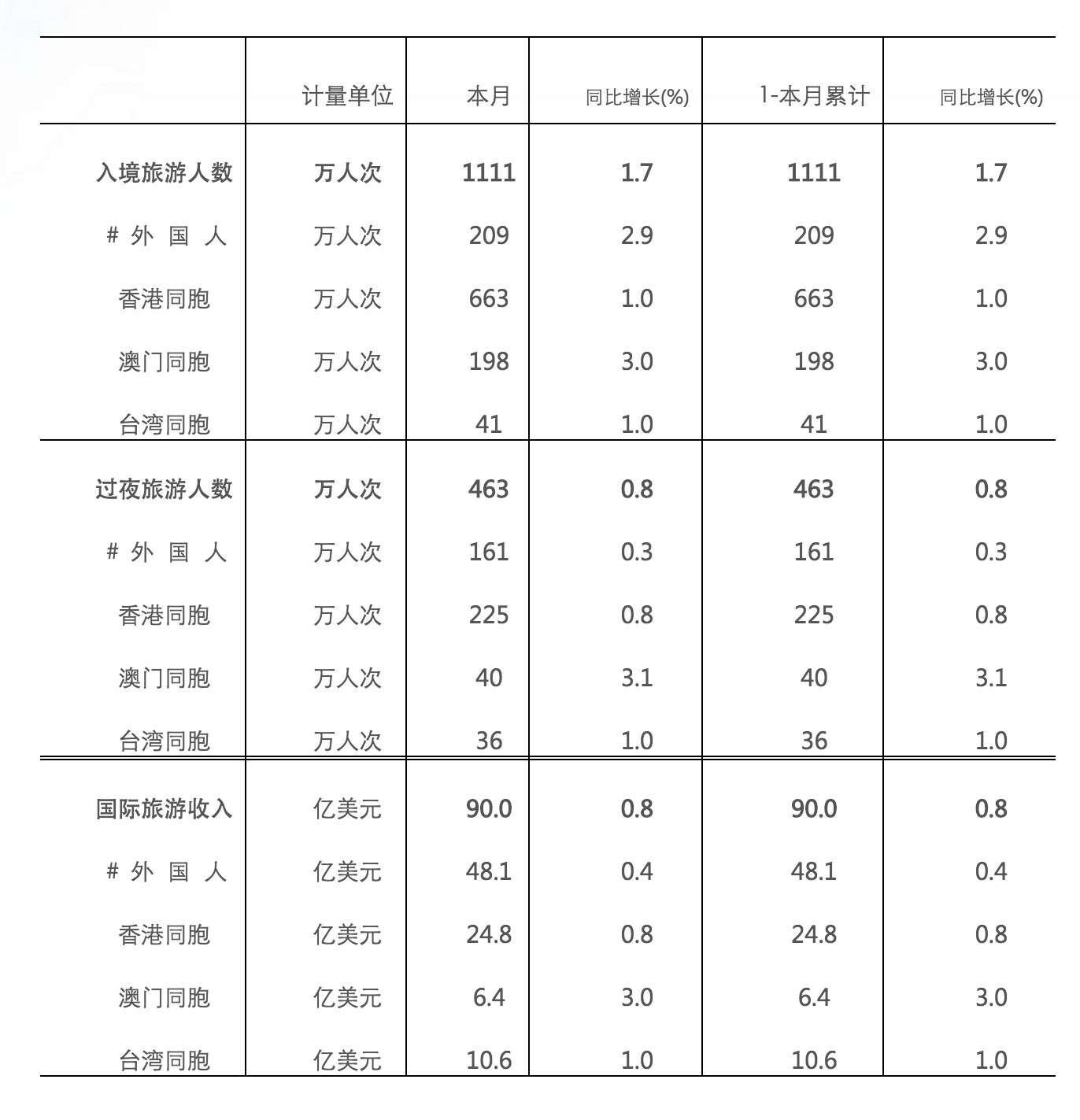 国家旅游局:2016年1月中国入境旅游数据情况 更多阅读:国家旅游局:2016年2月入境旅游情况2018中国入境旅游发展年度报告入境旅游电商:静悄悄地成长国家旅游局:预计2018年春节假日期间国内旅游市场达3.85亿人次 旅游收入4760亿元国家旅游局:2017年10月2日国庆节共接待国内游客1.14亿人次 同比增长9.9%国家旅游局:2016年2月主要旅游客源市场情况国家旅游局:2015年1-12月入境外国游客人数(按目的分)国家旅游局:2015年1-12月来华旅游入境人数(按入境方式分)国家旅游局:2015年1-12月入境外国游客人数(按年龄、性别分)国家旅游局:2016年1月中国主要旅游客源市场情况国家旅游局:2014年中国旅游业统计公报国家旅游局:2015年10月主要旅游客源市场情况国家旅游局:2014年10月3日“十一”旅游市场数据信息国家旅游局:2014年10月1日“十一”旅游市场数据信息支付宝:2025年五一入境游客消费金额同比增长180%