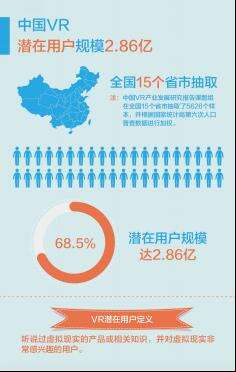 在发布会上,知名趋势观察家,知萌咨询机构CEO肖明超代表课题组发布了《中国VR用户行为研究报告》,报告显示,中国VR的潜在用户规模已经达2.86 亿,而在过去一年接触过或体验过虚拟现实设备的VR浅度用户约为1700万人,购买过各种VR虚拟现实设备的用户约为96万人。