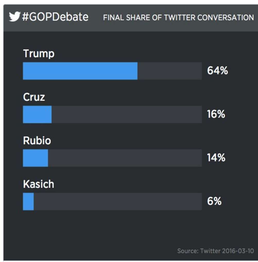 2月23日,达特茅斯学院约瑟夫·迪格拉齐亚(Joseph DiGrazia)研究员发表文章,探讨了社交媒体在揭示政治图景方面的作用与问题。“社交媒体往往有着很高的准确预测性,因为它们反映了民众对于特定候选人的兴趣,而兴趣往往与支持相关联,因此能够较好地预测选举结果;然而,在某些情况下,它们也可能会让你误入歧途。”
