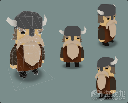 这个模型所耗费的时间远超过描绘原始精灵画面,但最终从8个角度激活精灵图像要比制作骨骼动画费时得多。