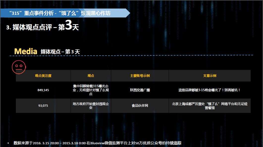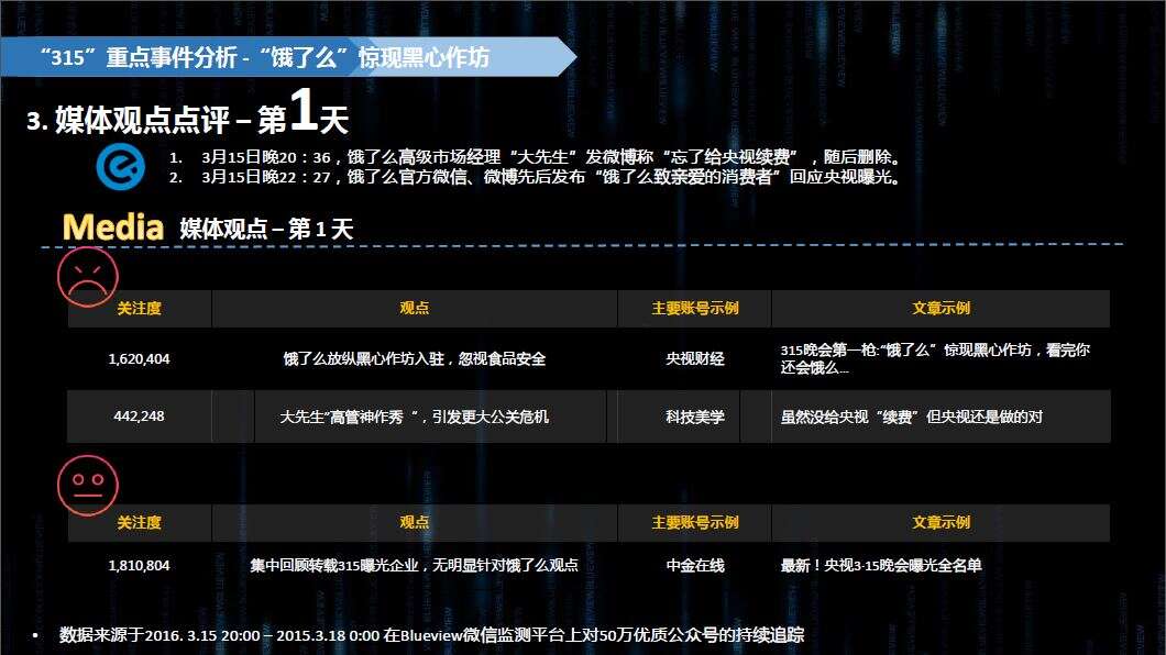 BlueFocus:针对「3.15」的72 小时危机响应分析 继针对「3.15」的 48 小时危机响应分析报告后,蓝色光标又发布了 72 小时危机响应分析报告。 更多阅读:BlueFocus:针对「3.15」的48 小时危机响应分析数字之旅的时代启幕——空间计算城市新忙族——一二线城市上班族营销洞察微报告百度指数:2019年3月汽车行业排行榜200万巨量星图达人的向上之路新闻数据使用要领清单:避开陷阱,完善处理流程无印良品:生活哲学和精细营销的对接什么数据库最适合数据分析师Demand Gen :制造商将数字转换扩展到销售和营销报告CCFA:2019年中国超市百强FESCO Adecco:2016薪资指南–会计财务及金融、行政管理篇城市相似性的可视化:美国和冰岛竟如此相似迅雷声明:迅雷大数据公司与“迅雷”无关,提醒用户注意风险2017百度世界大会PPT腾讯互娱:2017年Q3 AI 行业热度观察