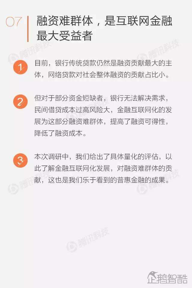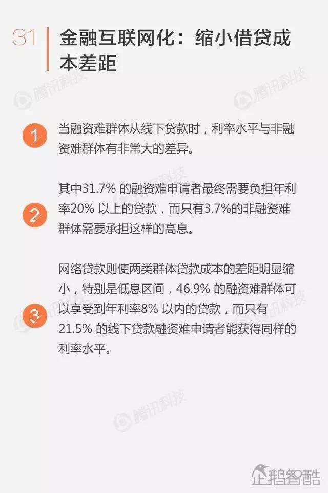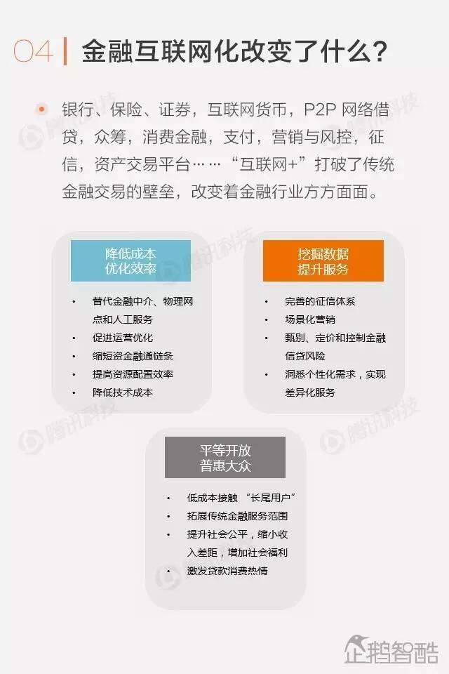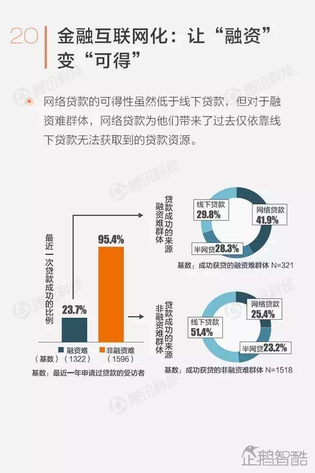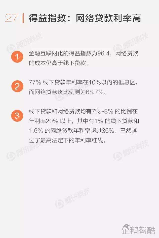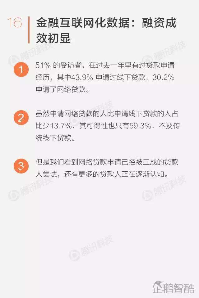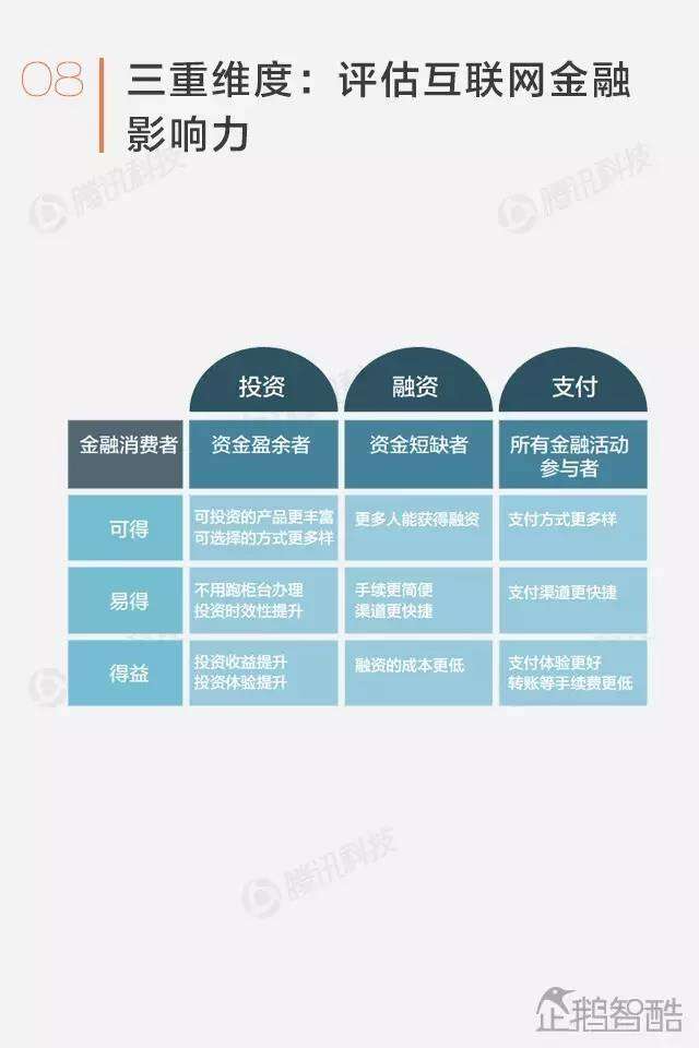 企鹅智酷:2016年中国互联网金融指数报告 在今年的博鳌亚洲论坛上,企鹅智酷、尼尔森、论坛官方杂志《博鳌观察》三方联合发布《中国金融互联网化指数报告》。 该指数站在金融消费者角度,从可得、易得、得益三个维度,去衡量金融的互联网化发展对金融消费者产生的影响。 2016 年首次发布的融资维度的中国金融互联网指数为108.5,这表明现阶段网络贷款已经给融资借贷需求者带来了积极影响,金融互联网化的成效已初步体现。 未来,报告课题组将对中国金融互联网化保持长期关注研究,并周期性更新中国金融互联网化指数。 以下为报告正文: 更多阅读:企鹅智酷:2016年微信影响力报告微金所:2014年12月信贷市场利率指数企鹅智酷:2017中国网络视频直播行业趋势报告企鹅智酷:2018年中国电竞运动行业发展报告企鹅智酷:抖音&快手用户研究报告2018年的中国消费者:全球品牌中国影响力指数首发企鹅智酷:2018中国在线综艺用户洞察报告企鹅智酷:2017中国电竞发展报告企鹅智酷:“解剖”95后——私享未来10年消费红利报告企鹅智酷:中国三四五线城市网民时间&金钱消费数据报告支付宝:2025年余额宝累计收益超5000亿元Henley&Partners:2024年亨利全球护照指数排名苏宁金融研究院:2020年一季报互联网金融行业携程:2020目的地复苏指数报告中国汽车流通协会:2019年10月份中国二手车经理人指数为51.6%