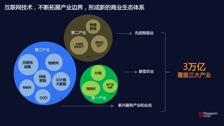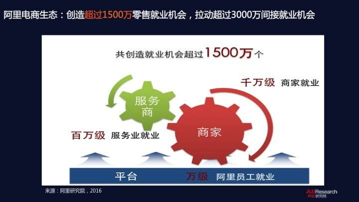 随着淘宝进一步向制造端去延伸,它在带动制造业的转型升级,就是C2B的发展。3万亿的销售带动着整个制造业体系、批发体系全方位的发展,推动了新的实体经济的发展。