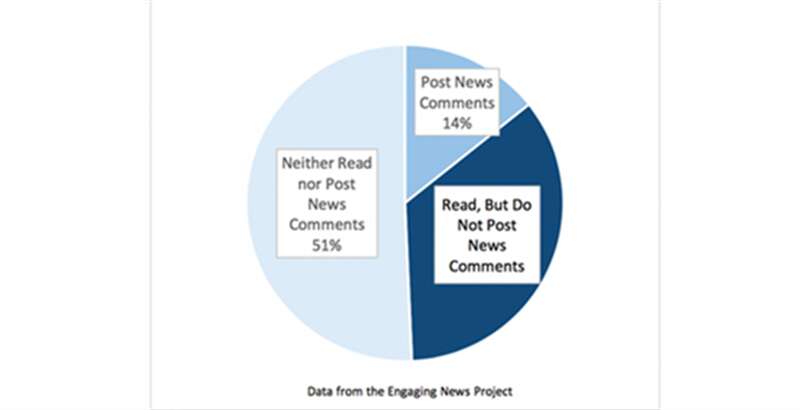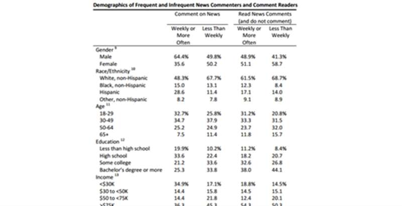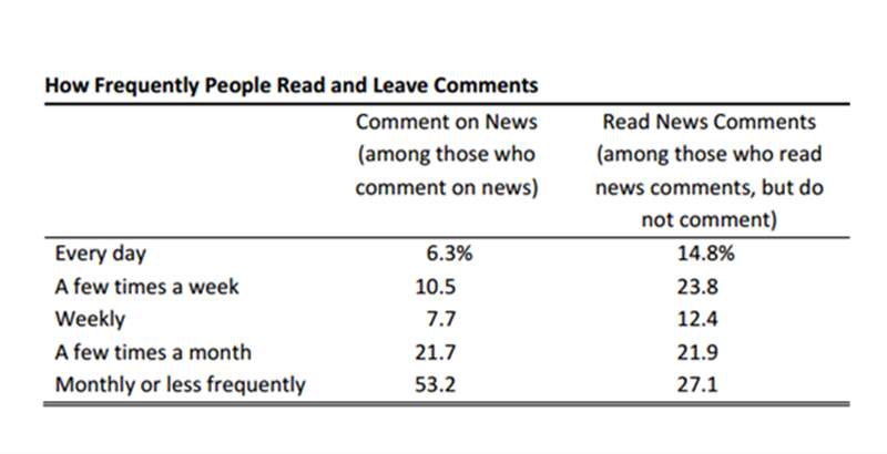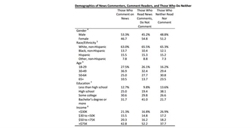 数据显示,在新闻下面留评论和阅读评论的人群,比那些不发布也不看评论的人群更年轻、受教育程度也更高。