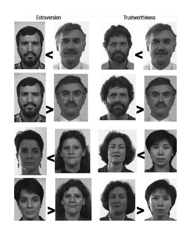 最近一个心理科学的研究(带上梯子)发现,我们会根据一张照片,会在不到1秒钟(40毫秒),会给出对他的结论。(如果我再推断下,在没有相互见过照片,大多数人在第一次见面可以通过几秒钟给一个人做出结论)