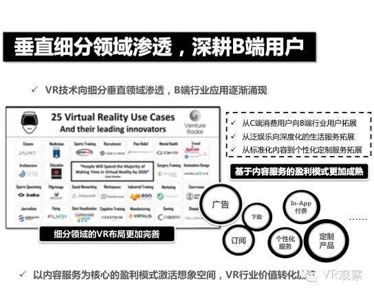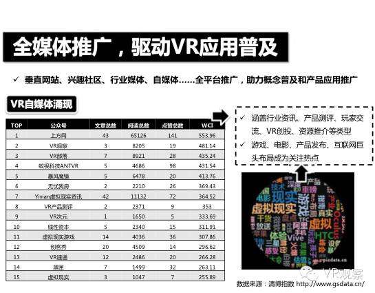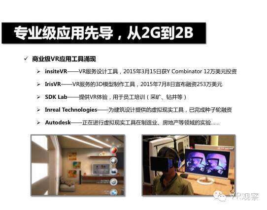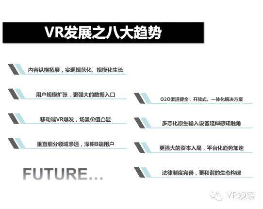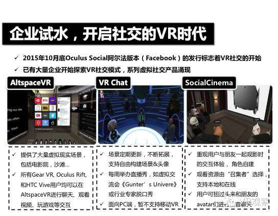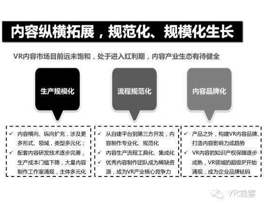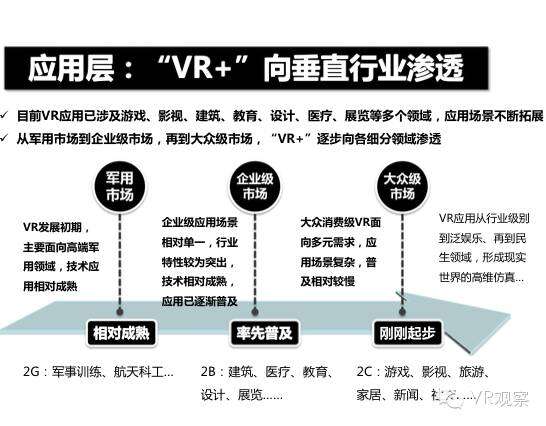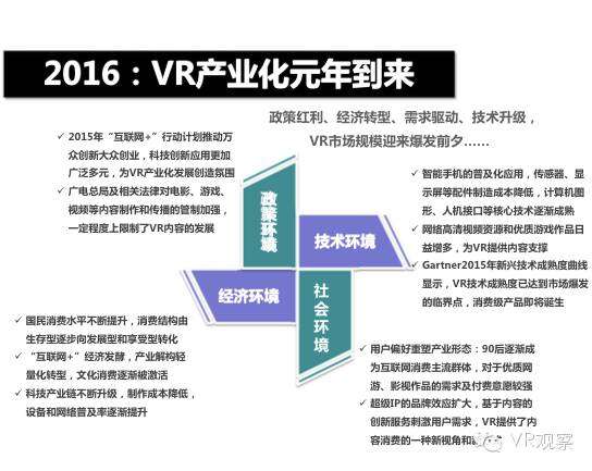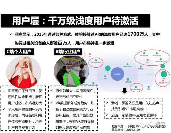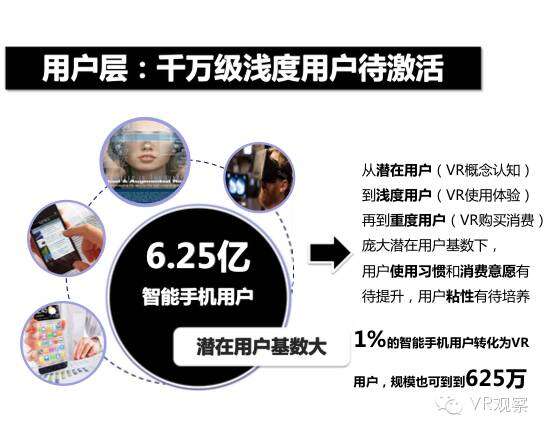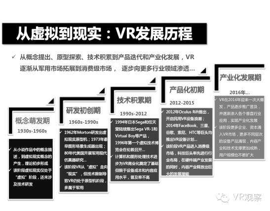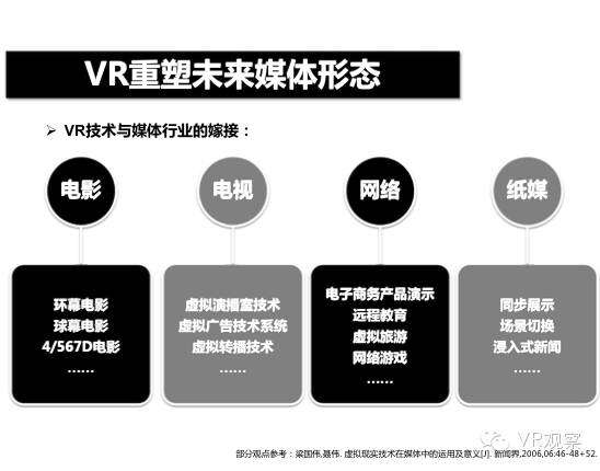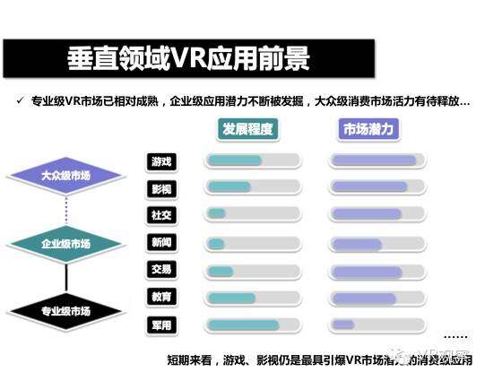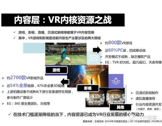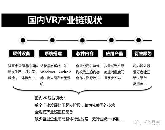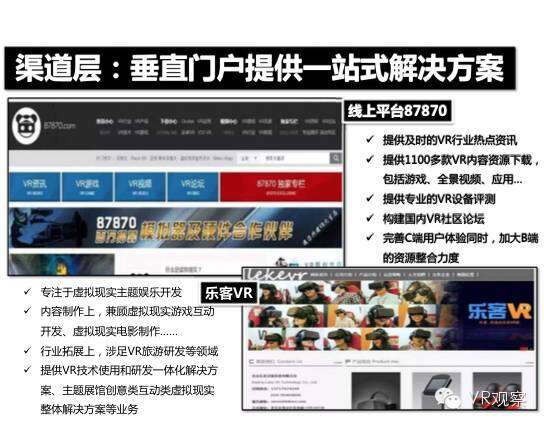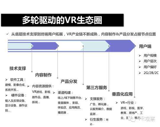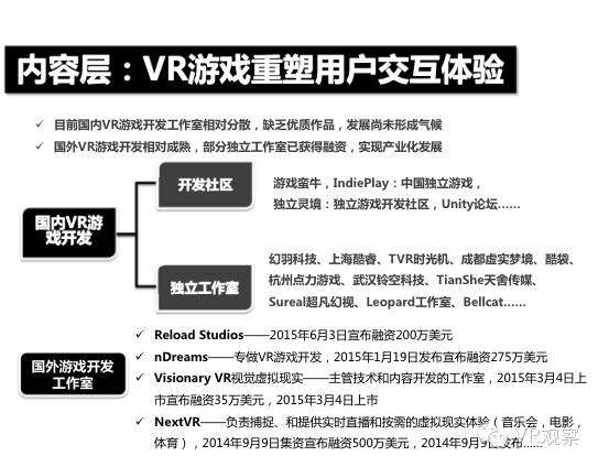 VR产业的全景观察 来自:清华沈阳团队 更多阅读:Super Data:2016虚拟现实产业报告VR 和 AR 生态链各端格局(一)Covid-19如何改变AR / VR的未来VR可以帮助孩子们克服痛苦的医疗程序Strategy Analytics:VR购买前试用用例最引人入胜原来它才是制约VR发展的最关键因素PC与移动之争 谁将主导VR的未来?细数阻碍VR市场蓬勃发展的五大难题95后调查:26%有VR,5%每天用,48%很少用Meta:2022年2月Meta的社交VR平台Horizon月活跃人数达30万2022年趋势观察:AR和VR爆款游戏推动硬件普及 5G 促进 VR 产业规模化运用SuperData:2018年XR(混合现实)行业调查报告尼尔森:VR对美国游戏玩家非常有吸引力Omdia:2022年4月越来越多的品牌商考虑为其 VR 设备配备 OLEDoS 显示面板
