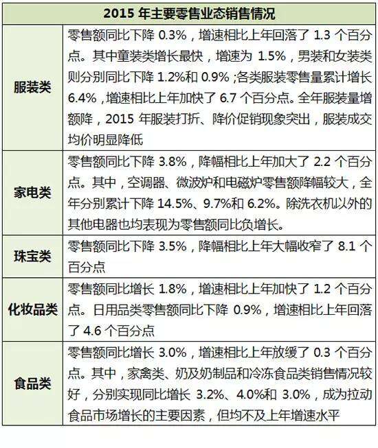 2015年全年全国百家重点大型零售企业零售额同比下降0.1%,增速相比上年回落了0.5个百分点,也是自2012年以来增速连续第四年下降,并且零售额首次出现了负增长。