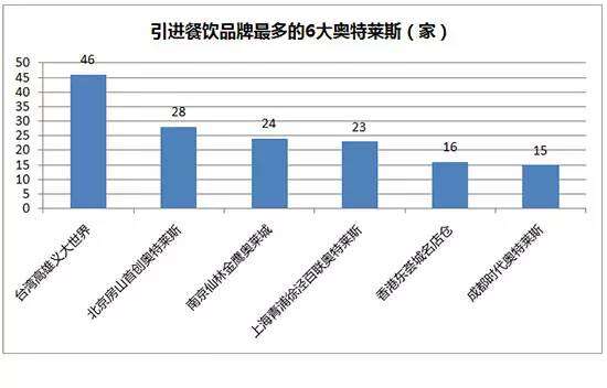 2015年业绩在8亿元以上的TOP17奥莱店王中,引进餐饮品牌最多的6大奥莱分别是:台湾高雄义大世界、北京房山首创奥特莱斯、南京仙林金鹰奥莱城、上海青浦徐泾百联奥特莱斯、香港东荟城名店仓、成都时代奥特莱斯。▼