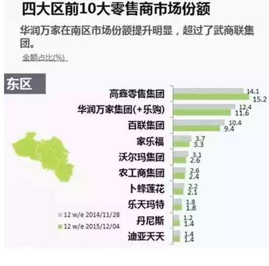 2、2015年十大超市企业份额及大数据解读