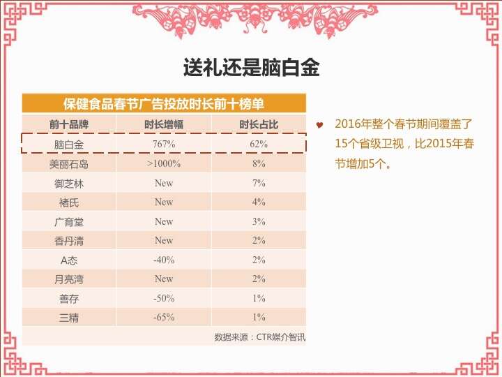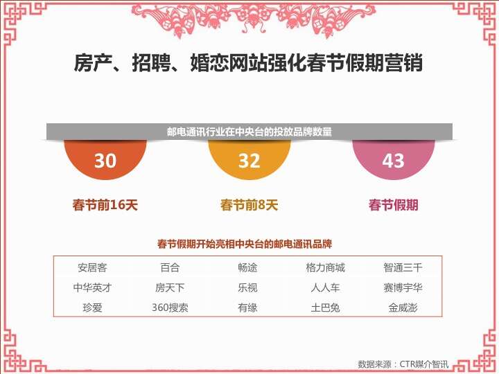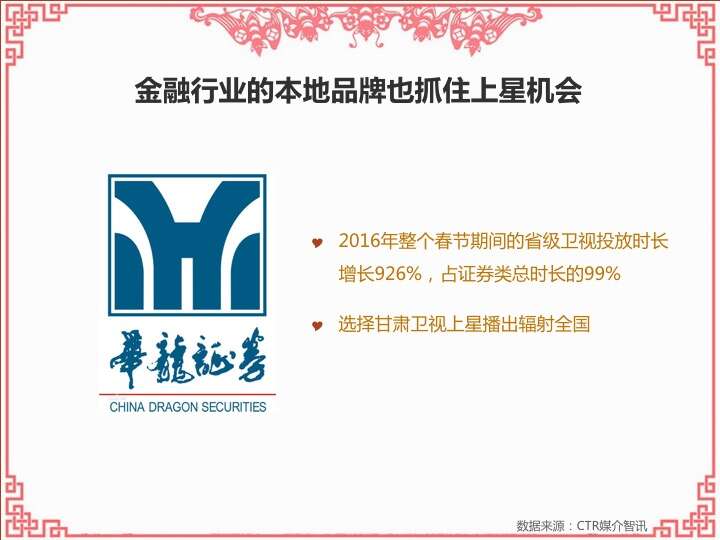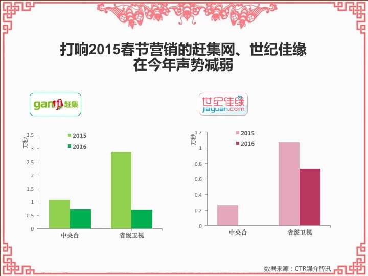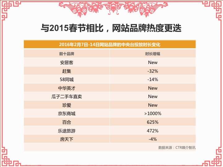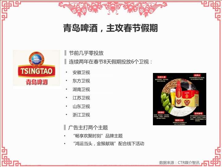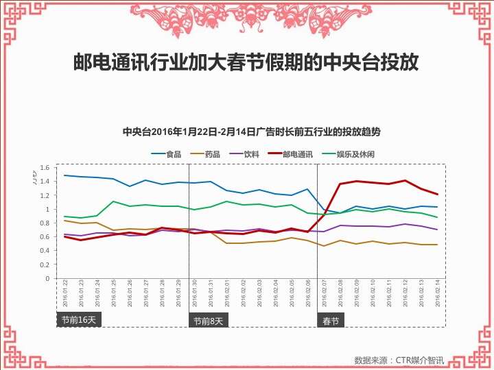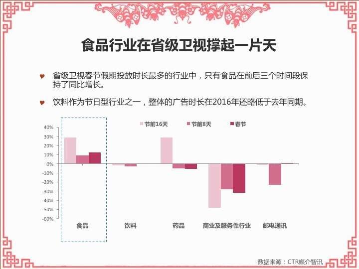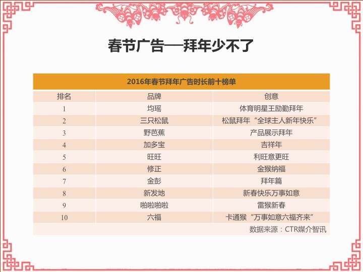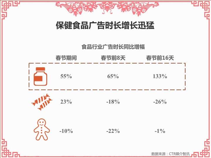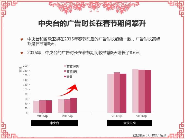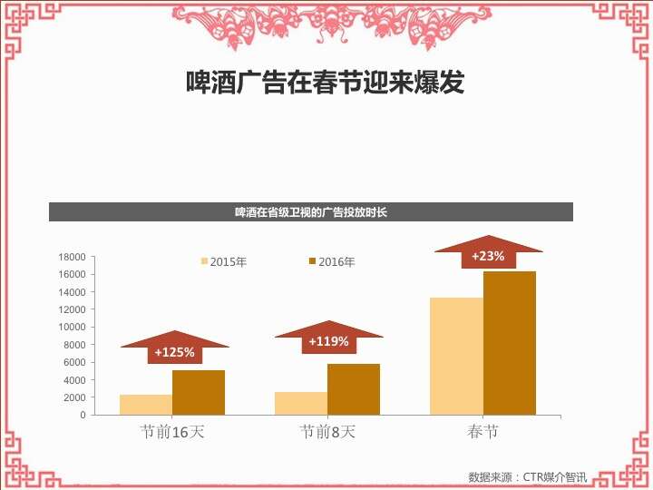 CTR:2016春节营销观察 更多阅读:CTR:中小城市青年观众电视收视特征简析CTR:2021年5月电视广告花费同比增长12.5%CTR:2022年1-10月电视广告刊例花费同比下跌14.1%CTR:2022年1-9月电视广告刊例花费同比下跌13.6%CTR:2022年1-7月广播广告刊例花费同比下跌8.2%CTR:2022年上半年广播广告刊例花费同比下跌7.7%CTR:2018年11月中国广告市场刊例收入同比下降9.7%CTR:2023年1-4月广播广告刊例花费同比下降14.4%CTR:2023年第一季度电视广告刊例花费同比下跌11.4%CTR:2020年4月电视广告刊例花费同比下滑31.6%CTR:2020年3月电视广告刊例花费同比下滑37.0%CTR:2020年2月传统户外广告刊例花费同比下滑16.9%CTR:2020年2月电视广告刊例花费同比下滑33.6% 时长同比下滑42.9%CTR:2019年11月乘用车电梯电视广告增长迅猛CTR:饮料行业在电梯海报和影院视频媒体花费增投明显