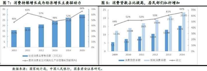 发展消费成为了国家政策层面的共识。十三五规划提出:“着力扩大居民消费,引导消费朝着智能、绿色、健康、安全方向转变,以扩大服务消费为重点带动消费结构升级”。十三五期间中国有条件迎来消费增长的黄金期,消费金融将在激活中低收入阶层的消费力、改善消费结构促进消费升级方面起到关键性的作用。