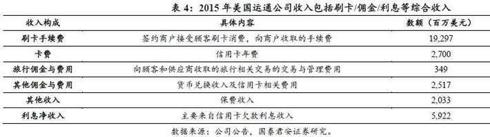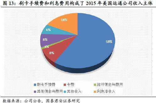 相较于美国其他信用卡公司以利息收益为主导、资本密集型的盈利模式,美国运通公司采用以商户回佣为主导、轻资产型模式,以商户刷卡回佣作为最主要的收入来源。根据美国运通公司2015年度财务报告显示,商户回佣和年费收入占业务总收入的67%,其次是利息净收入,占18%。美国运通卡的商户回佣率约为2.46%,远高于同业水平,但商户仍旧接受运通卡,其原因在于运通卡持卡人的消费能力很强,平均年消费7000多美元,是其他信用卡的两倍。这种盈利模式的最大优势在于其资产占用率低,抵御信用卡风险能力强。当金融危机来袭时,美国运通公司在2008年净利润虽然同比下滑了32.7%,但仍能持续保持盈利,并能继续向股东派发红利。而此时很多信用卡巨头,如万事达,已经产生了巨额亏损。