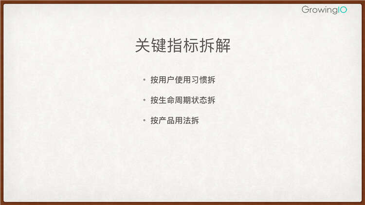 拆解关键指标有三种方法,分别是按照用户使用习惯、用户生命周期、产品来拆。