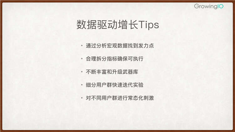 我们应该有一套数据采集和分析体系,每天为我们提供产品和业务的宏观数据。通过对宏观数据的分析,找到增长的发力点。