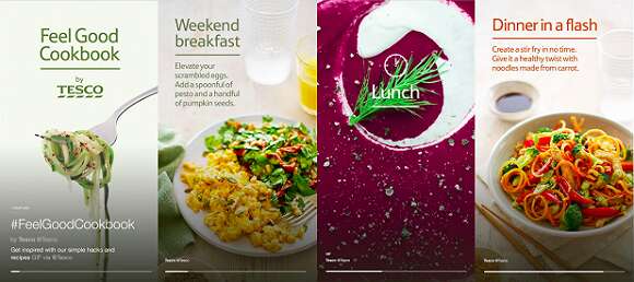 今年1月,乐购在Twitter Moments上发起了一个活动,宣传自己出版的菜谱书籍。这个活动跟以往粉丝互动的不同在于,所有关于该标签的状态和故事都被集合在一起。当粉丝们自制的食品图片被放在一起,视觉效果就像在翻一本在线菜谱集。
