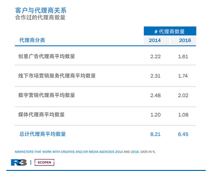 最新一轮研究显示今年经营者偏向于与6.4家代理商合作。
