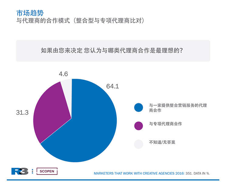 代理商一体化的趋势是研究中明确的诸多趋势之一,其他趋势还包括内部营销团队的不断涌现和报酬模式的变化。