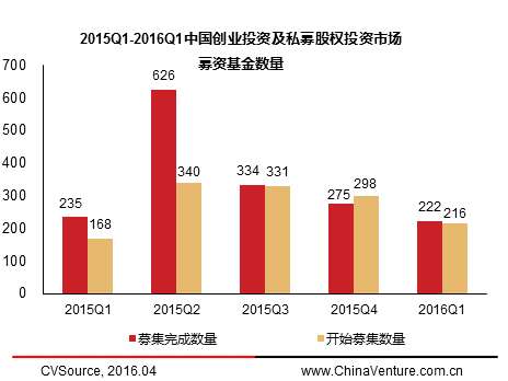 图1 2015Q1-2016Q1中国创投及私募股权投资市场募资基金数量