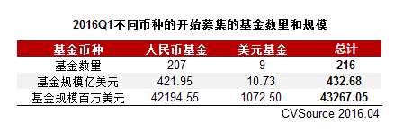 表3 2016Q1开始募集的不同币种基金的数量和规模