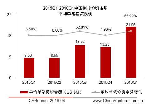 图6 2015Q1-2016Q1中国创业投资市场平均单笔投资规模