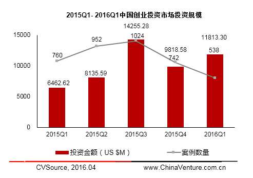 图5 2015Q1-2016Q1中国创业投资市场投资规模