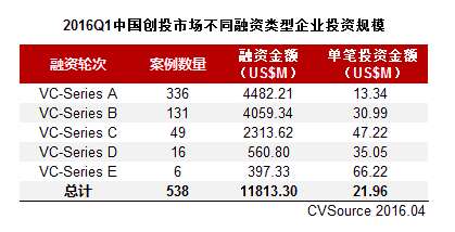 表8 2016Q1中国创投市场不同轮次的投资规模