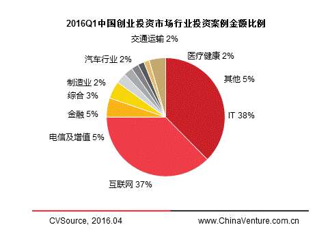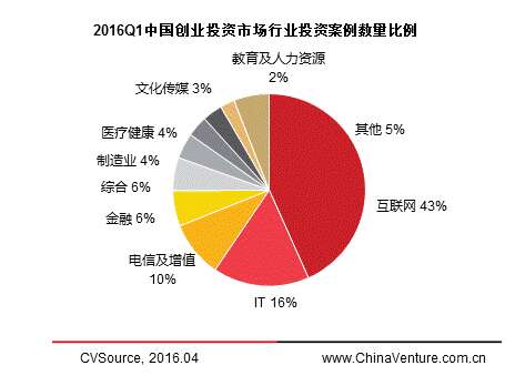 图10 2016Q1中国创业投资市场行业投资金额比例