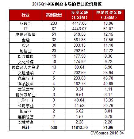 互联网、IT和电信及增值行业投资依旧主导VC市场