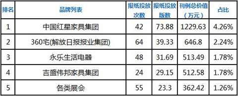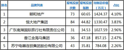 在上海市报纸广告主中,中国红星家具集团排在第一。在广州报纸广告主中,颐和地产排在第一。