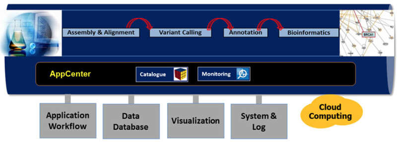 许多解决方案和产品可应用于该模型中成为可部署平台,用于基因组研究、数据转化和个性化医疗,如开源解决方案Galaxy,IBM频谱系解决方案GPFS™等。