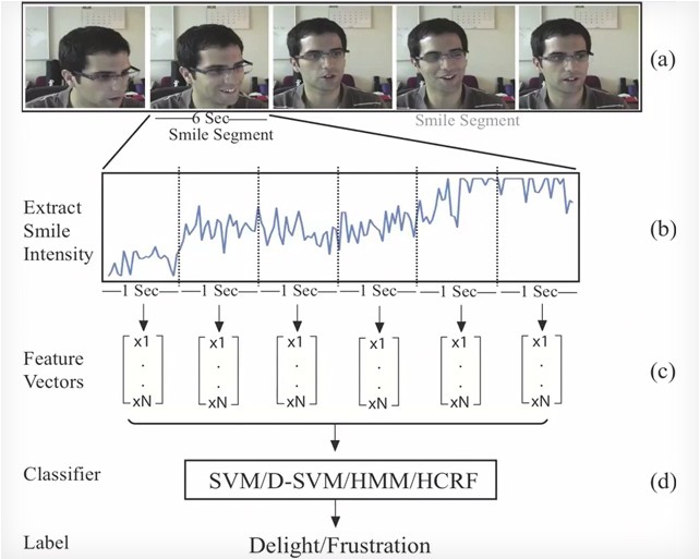 研究人员最初让实验者表现出高兴与沮丧的表情,并使用两个摄像头记录图像。然后再让计算机算法与普通人同时对记录的表情进行情绪判断,两者都能基本判别。再让本来就快乐的人与本来遭受了挫折的人都露出微笑表情时,人类通过笑容判别情绪的准确率过半,而MIT的计算机算法的差别准确率却能超过90%。