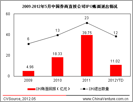 图3 2009-2012年5月中国券商直投公司IPO账面退出情况