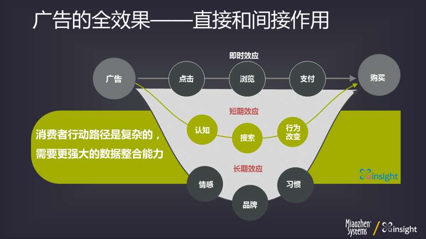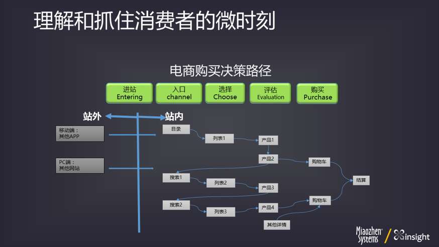 户外媒体、电视媒体主动和被动的结合能够更好地帮助我们做好营销,我们要从大的消费者路径去理解,消费者还有很多的微时刻。通过同源数据能抓到一位消费者在电商内部所有的路径,包括他在电商里来来回回不停地走动,可能有50%的人买的东西不是他想买的,做计划的部分是50%,其他转来转去购买的则是另外50%,而触发他购买行动的正是那些微时刻。