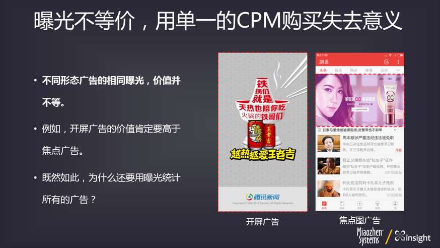 大家经常讲流量、曝光,所有人都知道曝光是不等价的。一个视频的曝光,开平广告的曝光都是不等价的,价格一定是不同的,问题是价格差别究竟是多少?